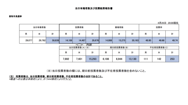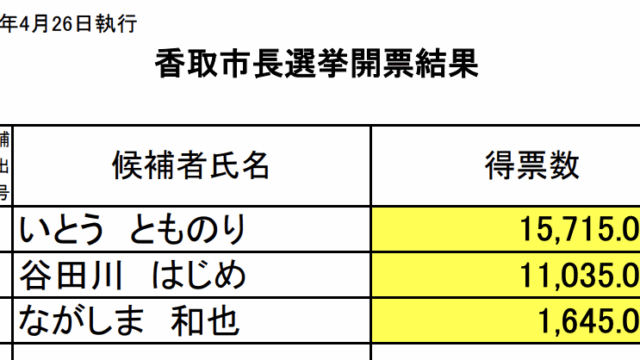 千葉県香取市長選挙2026・香取市議会議員補欠選挙が告示 市長選は3人、市議補選は欠員3に4人が立候補 2026年4月19日、香取市長選挙2026と香取市議会議員補欠選挙が告示されました。7日間の選挙戦が始まりました。香取市長選挙2026及び香取市議会議員補欠選挙に立候補された方々は、以下の通りです。 2026.04.20千葉県選挙香取市のこと