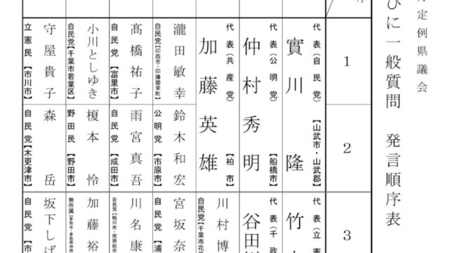 2026年2月25日、令和8年2月定例県議会において、登壇して千葉県議会では初めてとなる一般質問を行いました。平日昼間のご多用の中、また、足元の悪い中、県議会まで傍聴にお越しいただいたみなさん、ありがとうございました。また、インターネット中継でご覧いただいたみなさん、ありがとうございました。大変力になりました。今回は6項目について伺いました。千葉県の施策や課題はもちろん、香取市・神崎町・多古町の課題についてもお話しさせていただきました。いろいろな課題がありますが、熊谷知事をはじめ、執行部のみなさんにしっかりと受け止めていただき、ご答弁いただきました。いつも通り量が多くて早口になってしまいましたが、時間内に予定していた質問や要望ができて、ホッとしています。いつものように、後日一般質問の内容をまとめてご報告いたします。来週はまた予算委員会において登壇して質問をいたします。しっかりと質問できるよう、準備をして臨みたいと思います。