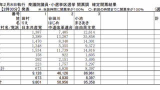 | 届出番号 | 候補者氏名(ふりがな) | 通称 | 性別 | 年齢 | 党派 | 職業 | 新現元別 |