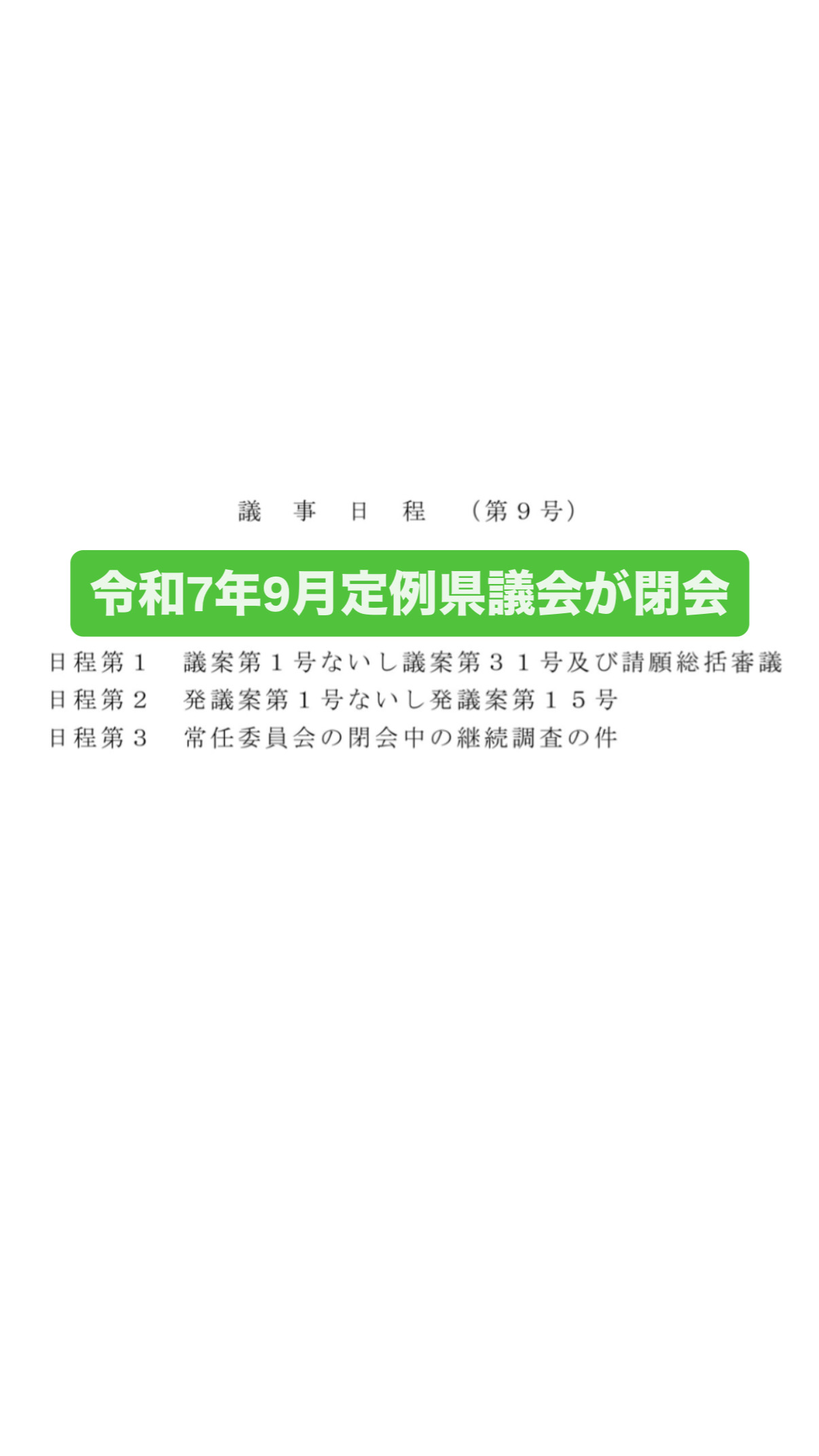 令和7年9月定例県議会では常任委員会での議案審査は終了し、これから本会議での審議に入っていきます。