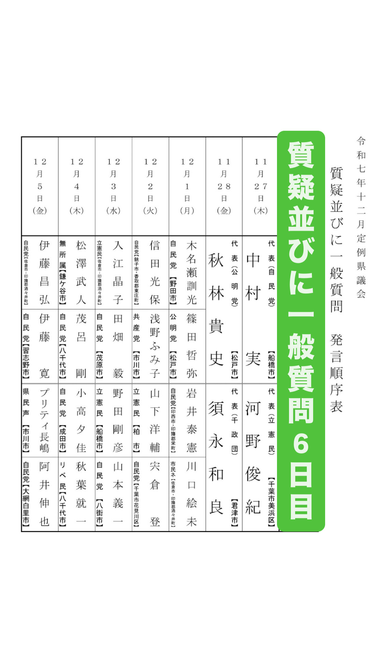 一般質問千葉県千葉県議会定例会