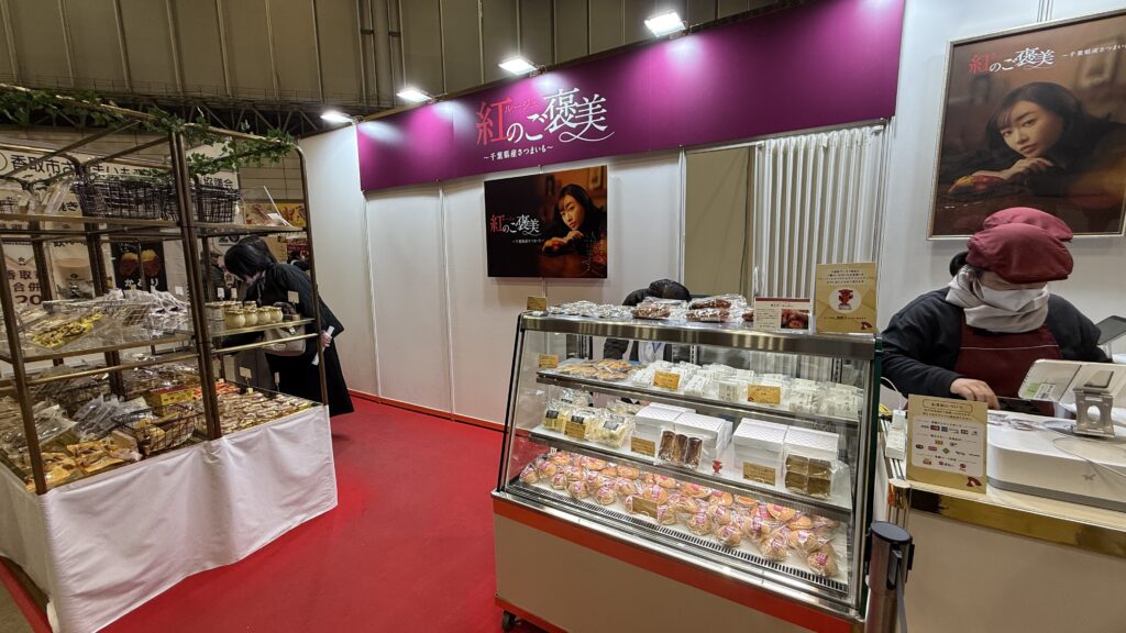 香取市内の事業者さんのお店の出展のほか、千葉県ブース「紅のご褒美~千葉県産さつまいも~」でも、香取市や多古町の事業者さんの商品がたくさん販売されていました。