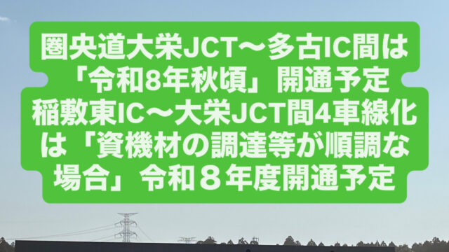 千葉県圏央道大栄JCT~多古IC間は「令和8年秋頃」開通予定 稲敷東IC~大栄JCT間4車線化は「資機材の調達等が順調な場合」令和8年度までの開通予定
