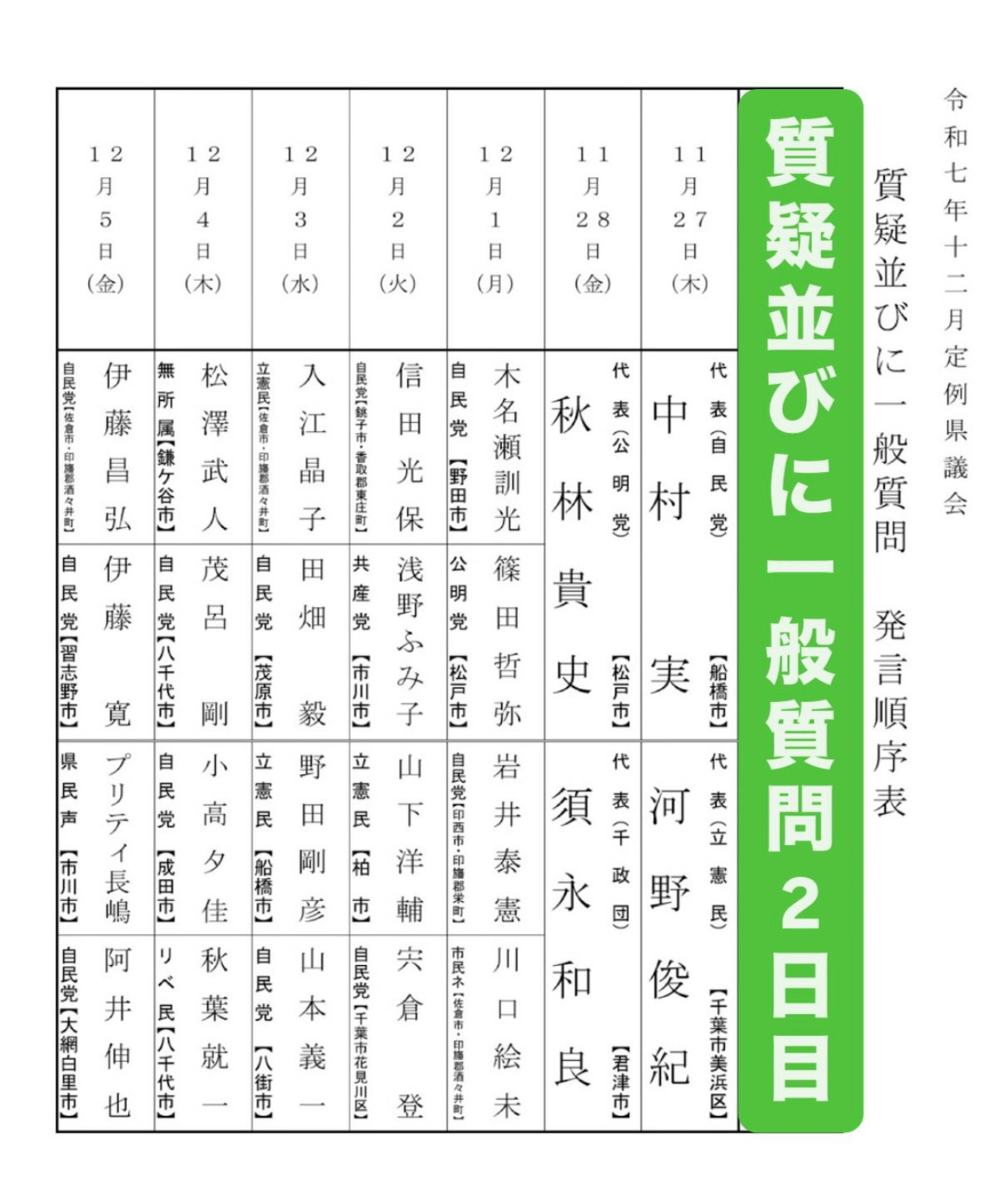 2025年3月の千葉県議会議員補欠選挙で当選してから半年が経過した9月5日から10月3日にかけて、令和7年9月定例県議会が開催されました。